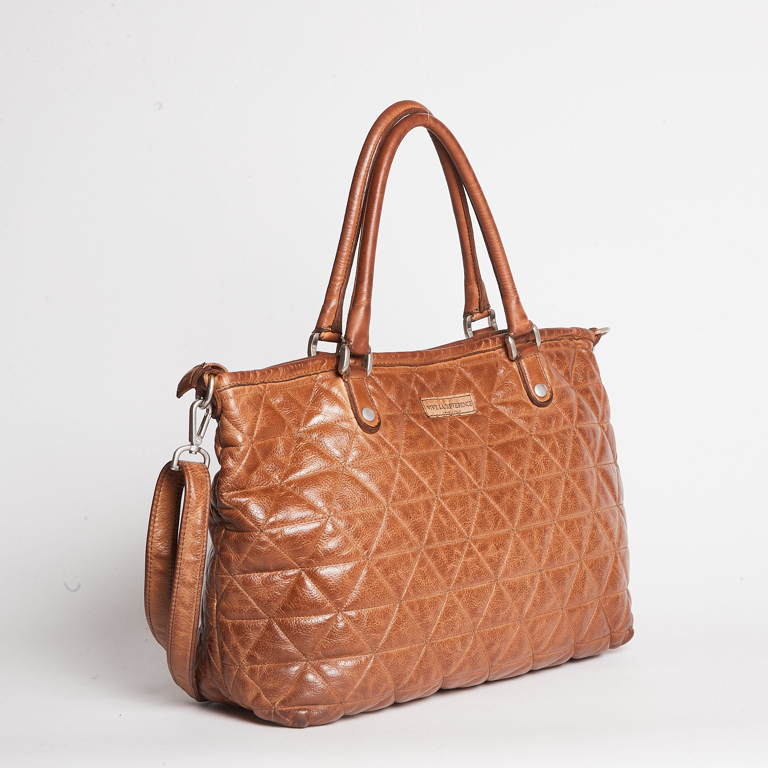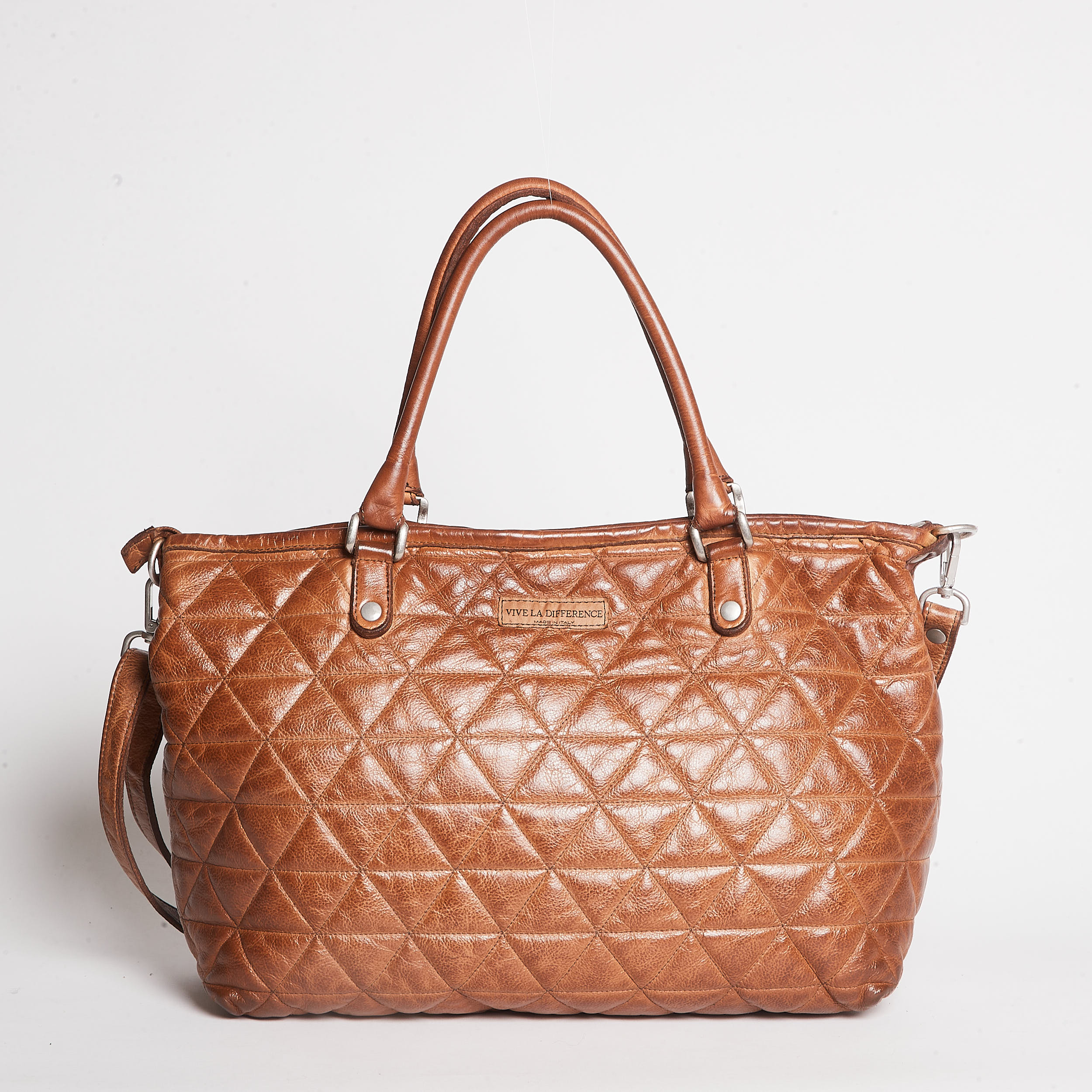 Internal zip pocket and cell phone pocket, adjustable leather shoulder strap