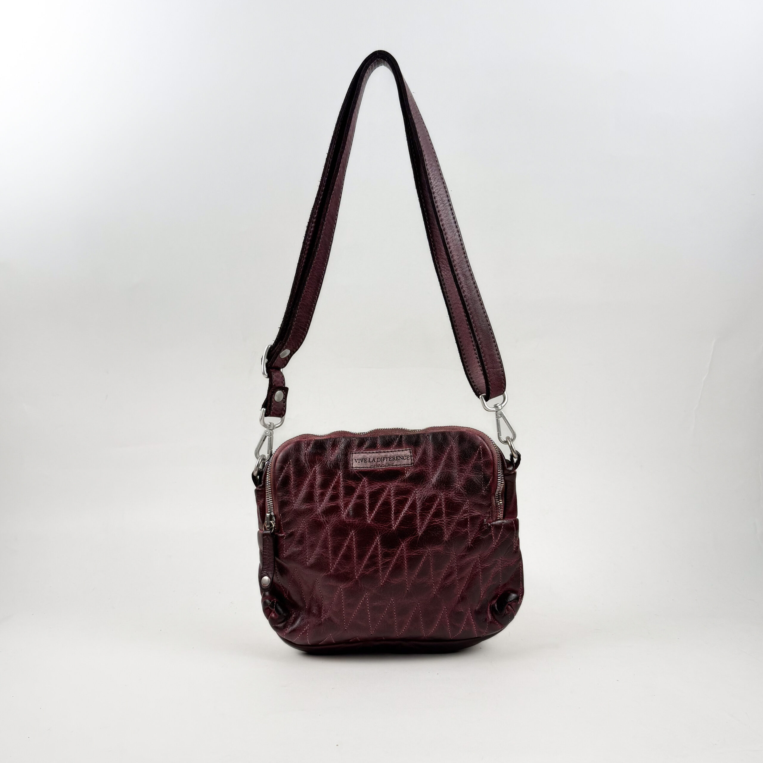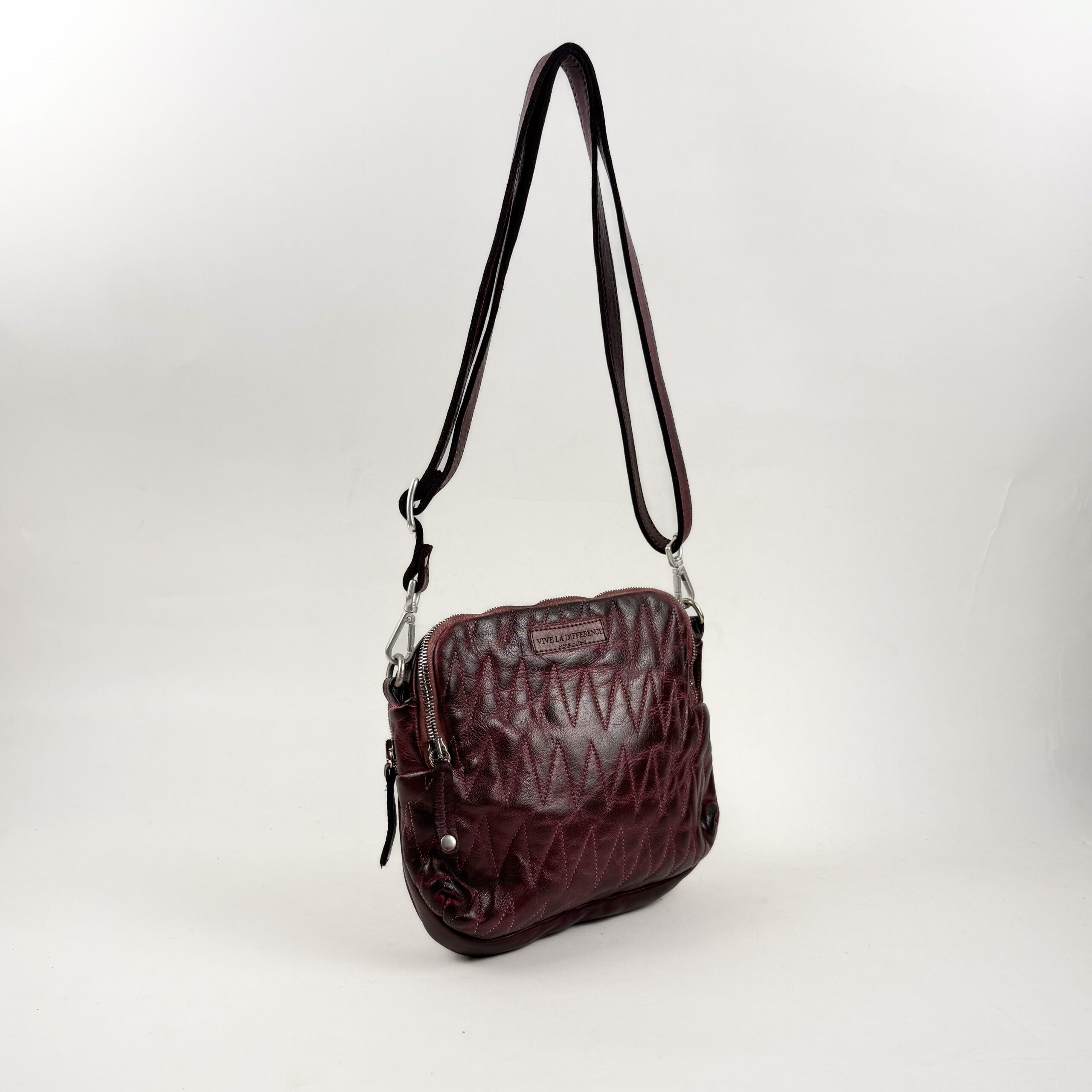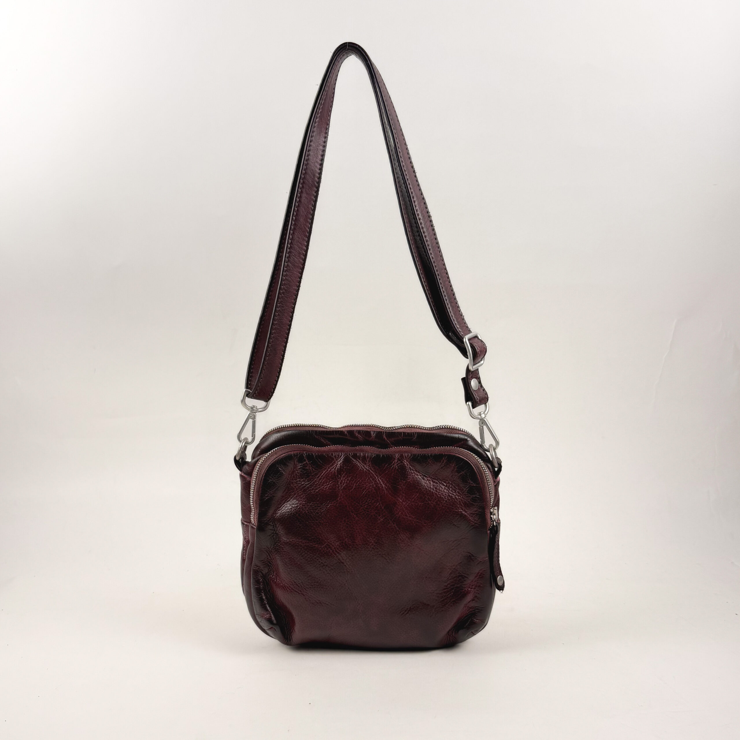 Dimensions: H 21 cm - W 25 cm - D 3.5 cm Composition: 100% calfskin Zip closure, two separate compartments Internal zip pocket, adjustable leather shoulder strap 100% cotton lining Made in Italy