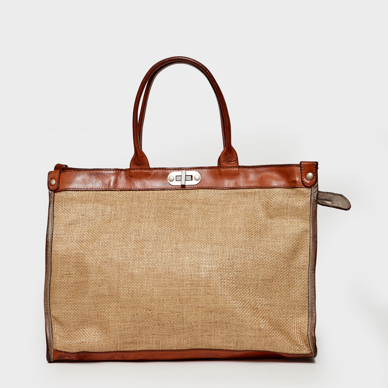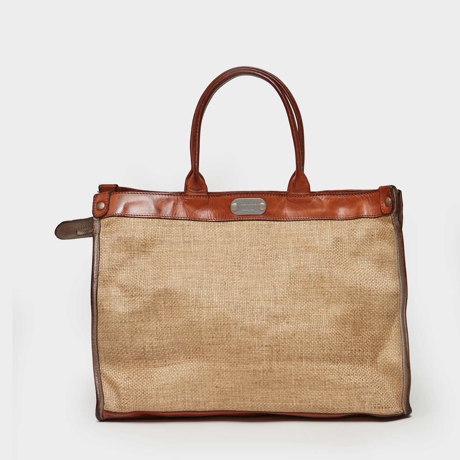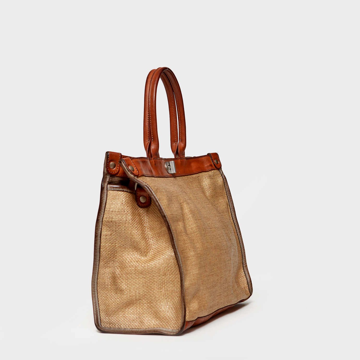 HANDBAG LEATHER AND TREATED STRAW