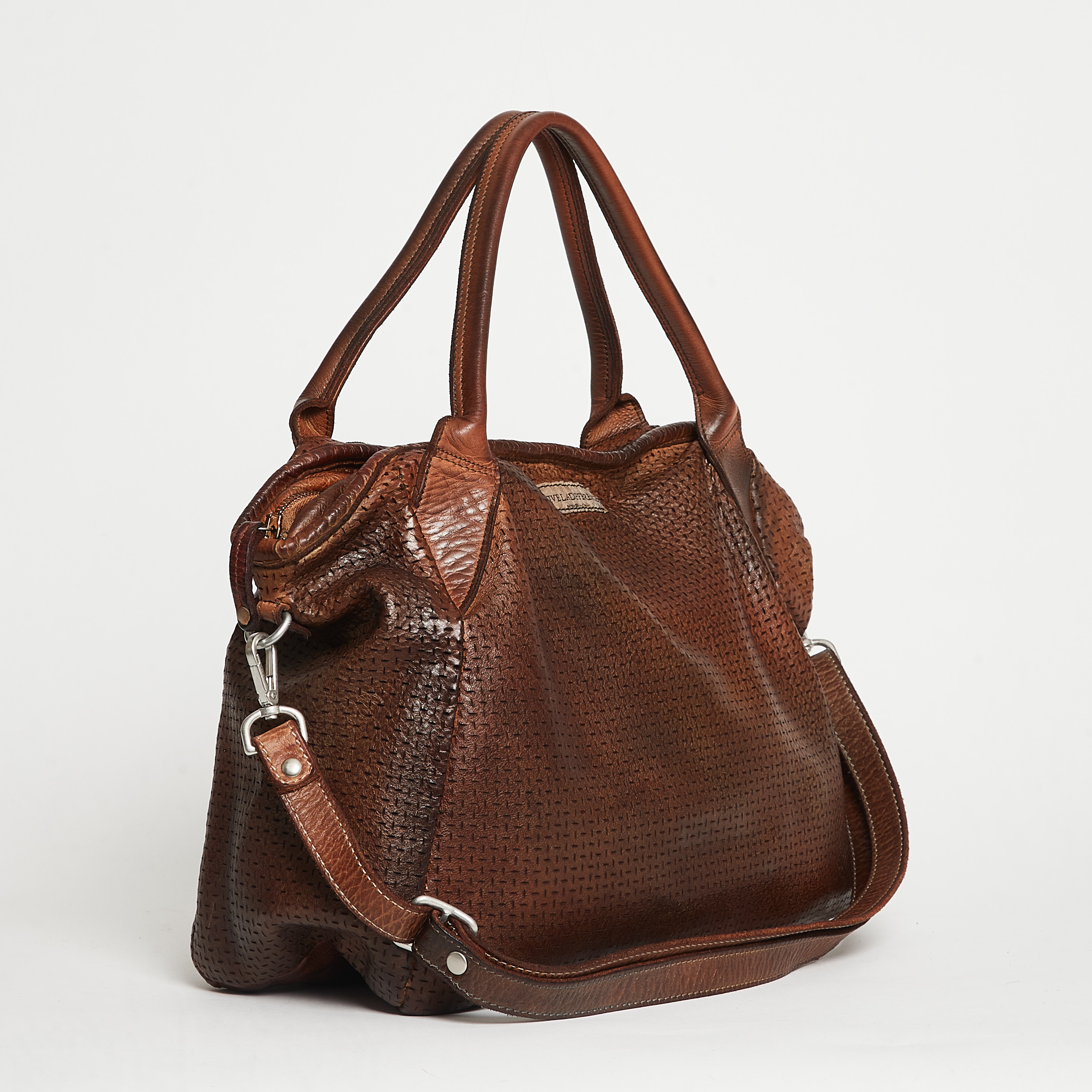 • Tasca interna con zip e portacellulare , tracolla in pelle regolabile
