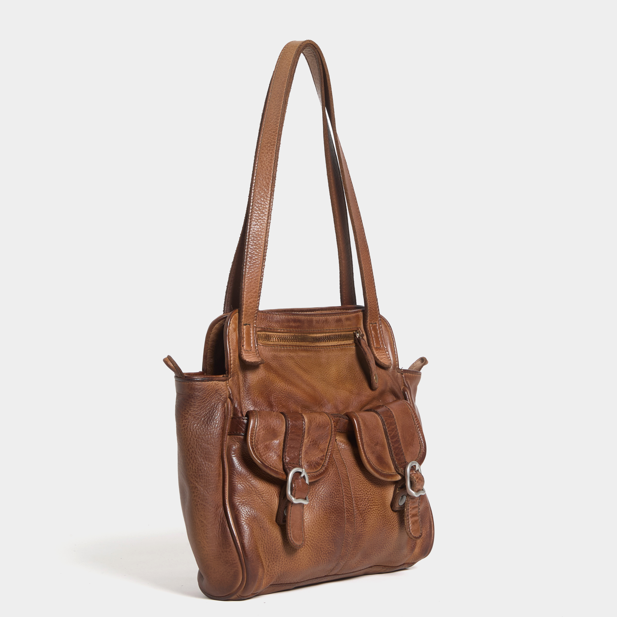 • Tasca interna e esterna con zip , portacellulare , tracolla in pelle regolabile
